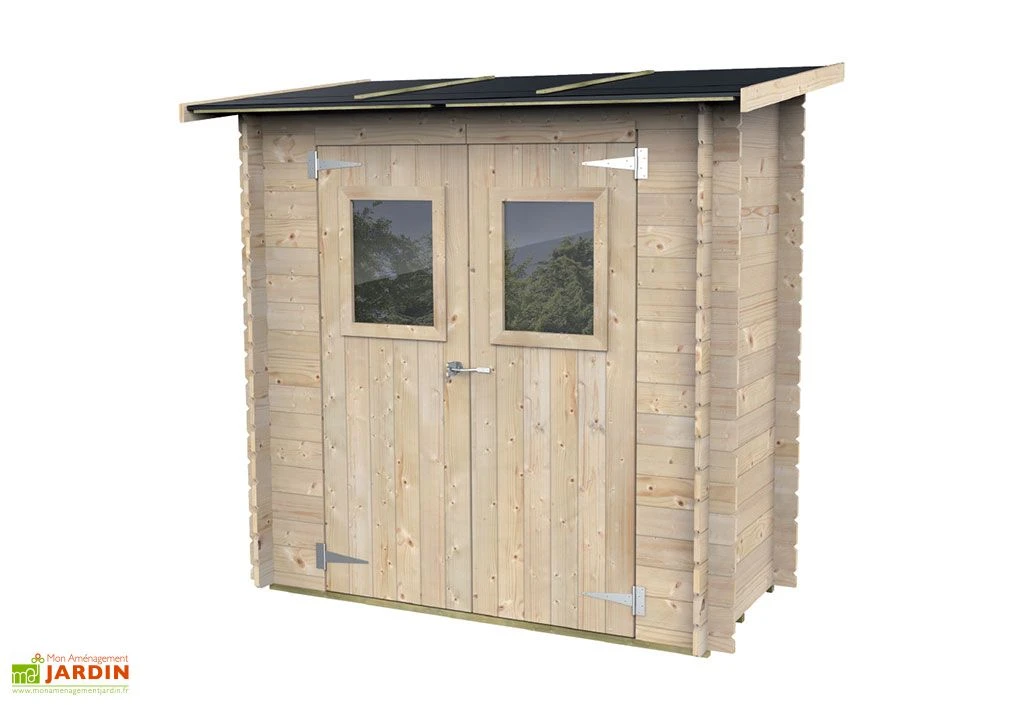 Cette remise de jardin de la marque Alce Living consiste en un abri adossable équipé d’une double porte vitrée de 125 cm de large pour 168 cm de haut. Pensé pour les petits jardins, ce cabanon en bois mesure 198 cm de largeur sur 98 cm de profondeur, des dimensions qui lui permettent de n’occuper que peu d’espace. Il vous offrira néanmoins suffisamment de place pour ranger du matériel de jardinage, des outils ou du petit mobilier de jardin.