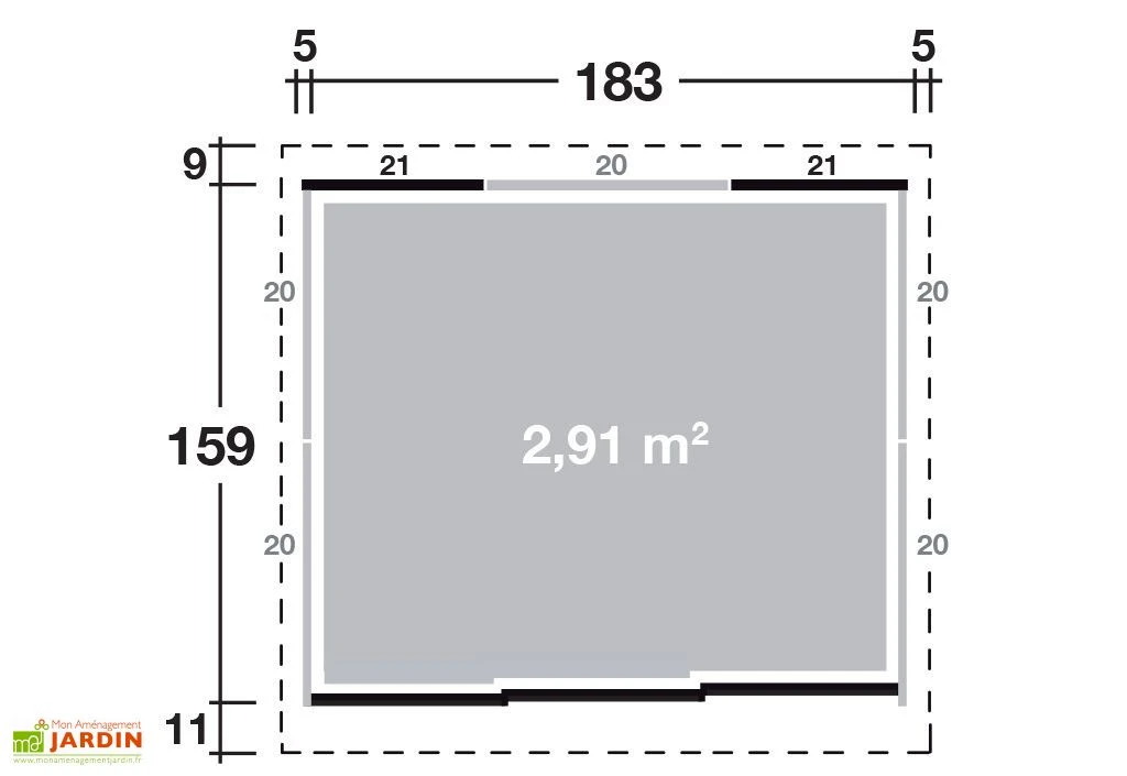 Les dimensions intérieures de l’abri sont de 1,83 x 1,59 x 2,11 m (l,l,h) et offrent une surface utile de 2,9 m2. Les dimensions extérieures hors tout sont de 1,93 x 1,79 x 2,11 m (l,l,h). La hauteur en façade est de 2,11 m et de 2,05 m à l’arrière pour permettre l’évacuation de l’eau. Votre abri Yokohama est garanti 20 ans.