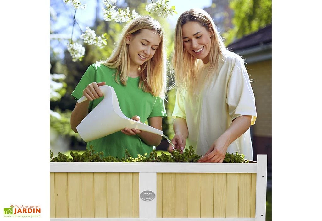 Cette jardinière sur pieds de la marque Axi est idéale pour faire pousser quelques légumes ou plantes aromatiques. Elle mesure 120 cm de long sur 54 cm de large et 94 cm de haut, des dimensions qui facilitent son intégration dans les petits extérieurs et qui vous permettront de jardiner sans avoir à vous baisser. Son bac pourra supporter un poids maximum de 150 kg et un tissu géotextile vous sera également fourni pour tapisser le fond du bac.