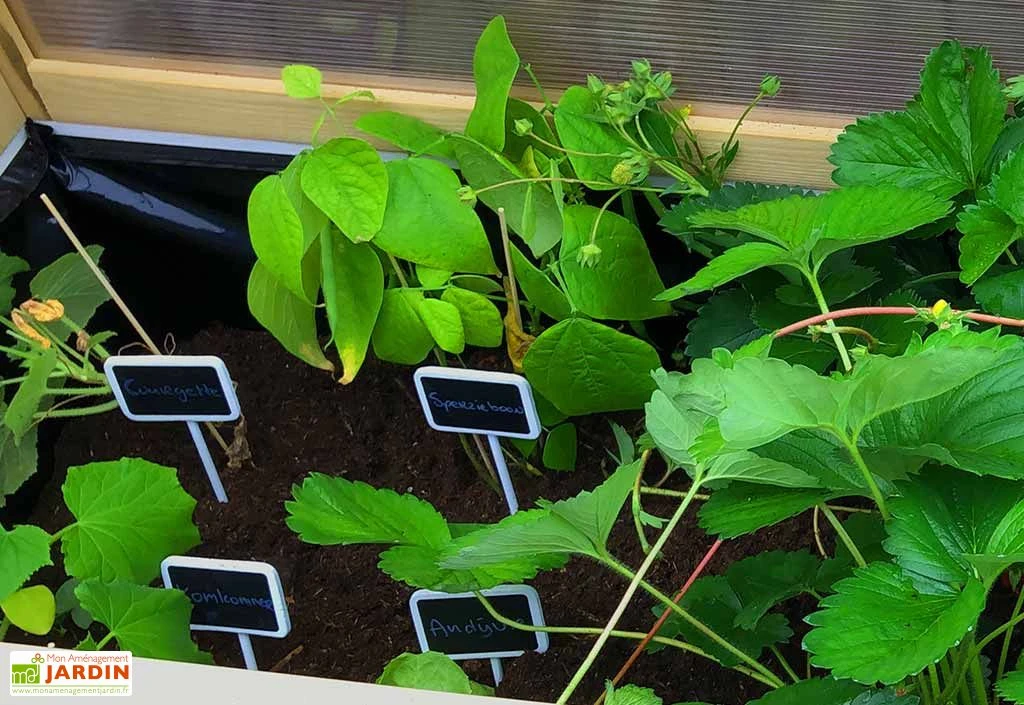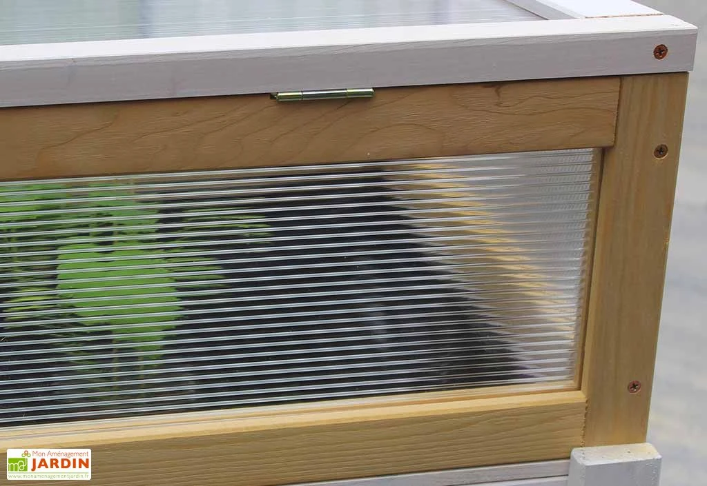 Cette serre sur pieds comprend un bac de culture en bois et des parois en polycarbonate de 4 mm d’épaisseur. Le bois utilisé, du hemlock, est naturellement imputrescible, ce qui signifie qu’il résistera parfaitement à l’humidité, à la moisissure et aux insectes xylophages qui auraient pu le détériorer, le tout sans nécessiter de traitement ou d’entretien. Ce bois est même certifié FSC, un label qui indique qu’il provient de forêts gérées dans le respect de l’environnement.