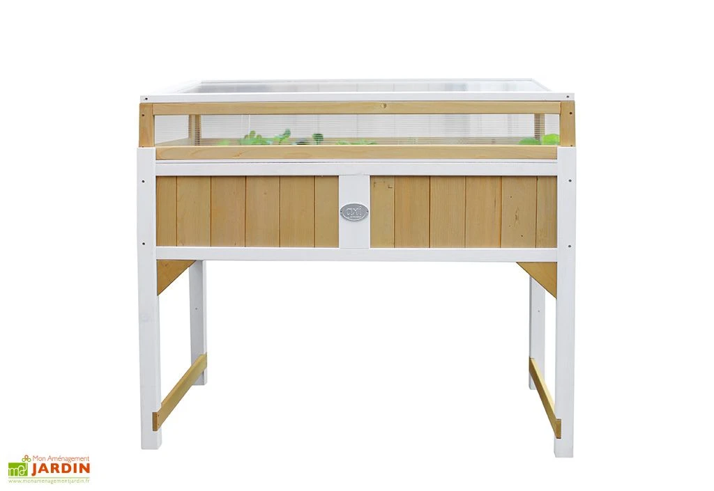 Cette mini serre de chez Axi vous permettra de faire pousser en toute simplicité fruits, légumes et plantes aromatiques directement sur un balcon ou dans un petit jardin, le tout sans les maux de dos inhérents au jardinage puisqu’elle est surélevée ! Elle mesure 120 cm de long sur 54 cm de large et 120 cm de haut et est livrée avec un tissu géotextile à disposer au fond du bac. Il ne vous reste plus qu’à ajouter du terreau (max. 150 kg) et à planter les végétaux de votre choix !
