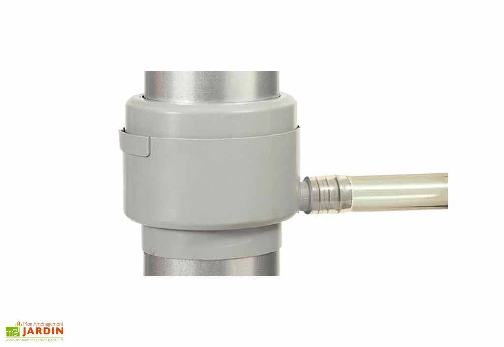 Ce grand récupérateur d’eau a une contenance de 500 L et des dimensions de 79 x 79 x 150 cm (l,l,h). Il est fourni avec un collecteur à raccorder à la gouttière et avec un robinet permettant de verser l’eau facilement. Une notice d’utilisation en Français vous permet d’installer facilement votre cuve.