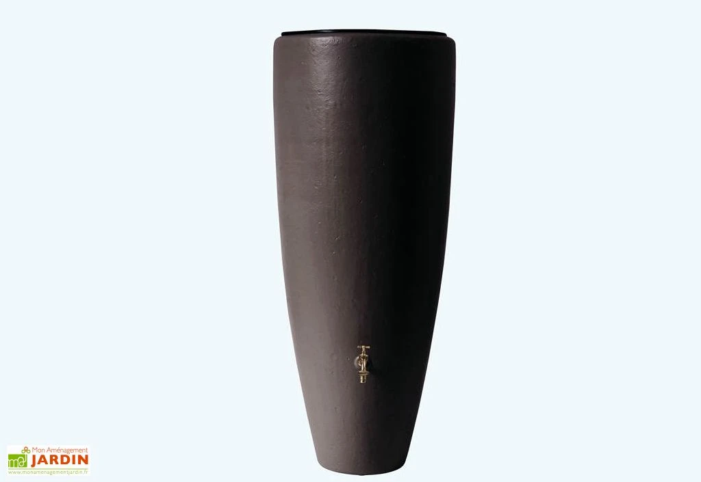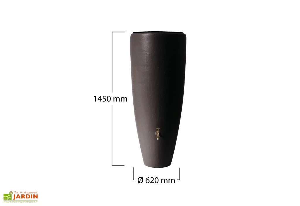 Le robinet est en laiton de 19 mm. Il est livré complet avec un embout cannelé. La cuve mesure 145 cm de hauteur et 62 cm de diamètre max. Elle dispose d’une double fonction puisqu’elle permet de récolter l’eau et de décorer grâce à son bac à fleurs. Pensez à vider la cuve en hiver pour éviter que l’eau ne gèle. Elle est équipée d’un bouchon de vidange afin de faciliter la purge.