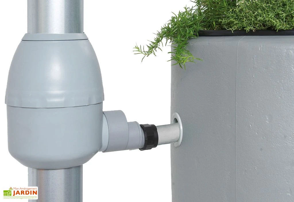 Le collecteur de gouttière filtrant Eco de Luxe est gris. Il permet de préserver l’eau de pluie des salissures du toit et dispose d’une fonction de trop-plein automatique. Il peut se mettre en position été ou hiver pour que la cuve ne se remplisse pas. Le collecteur dispose d’un tuyau et d’un embout de raccordement. Il s’adapte aux gouttières de 8 ou 10 cm de diamètre et dispose d’une sortie latérale de 32 mm. Il est idéal pour une surface de toit jusqu’à 80 m2.
