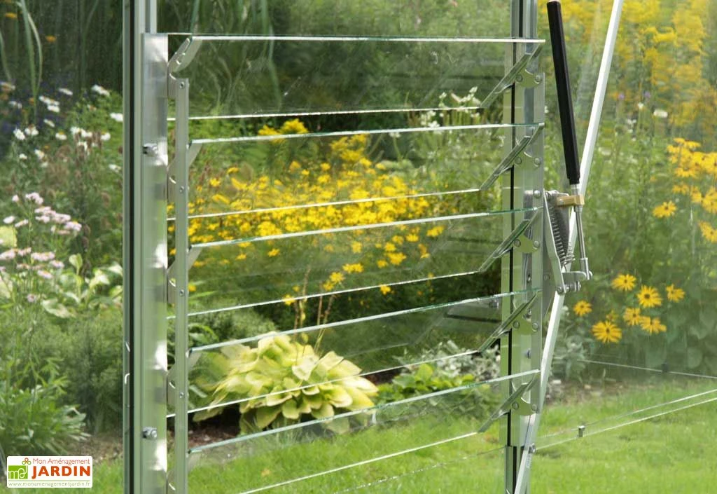 Jalousie en aluminium anodisé. L’ouverture automatique est disponible en option et ne peut pas être vendue sans serre Lams.