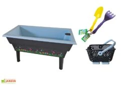 Parfaitement équipée, cette jardinière est pensée pour les enfants mais elle n’est pas un simple jouet. Elle bénéficie de la même qualité qu’une jardinière pour adulte puisqu’elle dispose d’une cheminée d’aération et d’arrosage latérale, d’un contrôle du niveau d’eau, d’un système de trop plein, d’une réserve d’eau, d’une double paroi et d’une contenance totale de 40 litres.