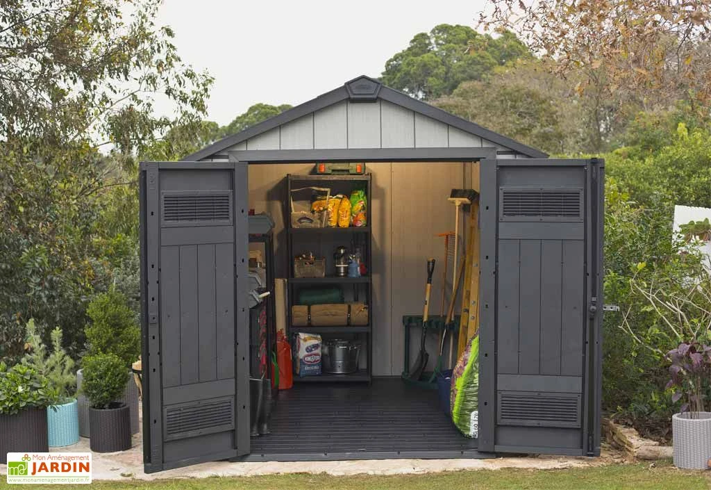Votre abri dispose d’une double porte de 1,48 x 1,82 m l,(h) avec dispositif de verrouillage en acier inoxydable (cadenas non inclus). Pour un abri vraiment unique, vous avez la possibilitĂ© de le peindre (uniquement les murs) avec de la peinture acrylique.Â