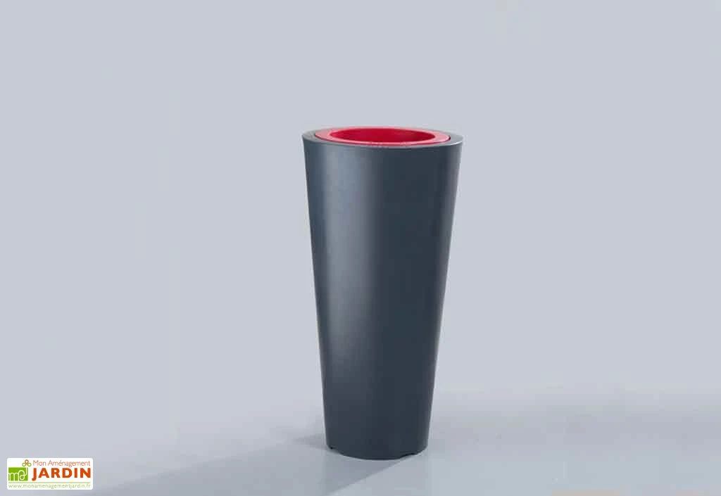 Si le principal avantage du pot de fleurs à double paroi repose sur la réserve d’eau qu’il offre à vos plantes (environ 5,5 L d’eau), ce type de pot isolera mieux vos plantations, se montrera également plus facile à entretenir et moins sujet à un quelconque risque de déformation. Le pot intérieur est de plus équipé d’un double fond et d’un système de mèche qui permet de faciliter la remontée de l’eau contenue dans la réserve vers vos végétaux. Notez enfin que ce pot de fleurs en plastique pourra contenir jusqu’à 47 L de terreau.