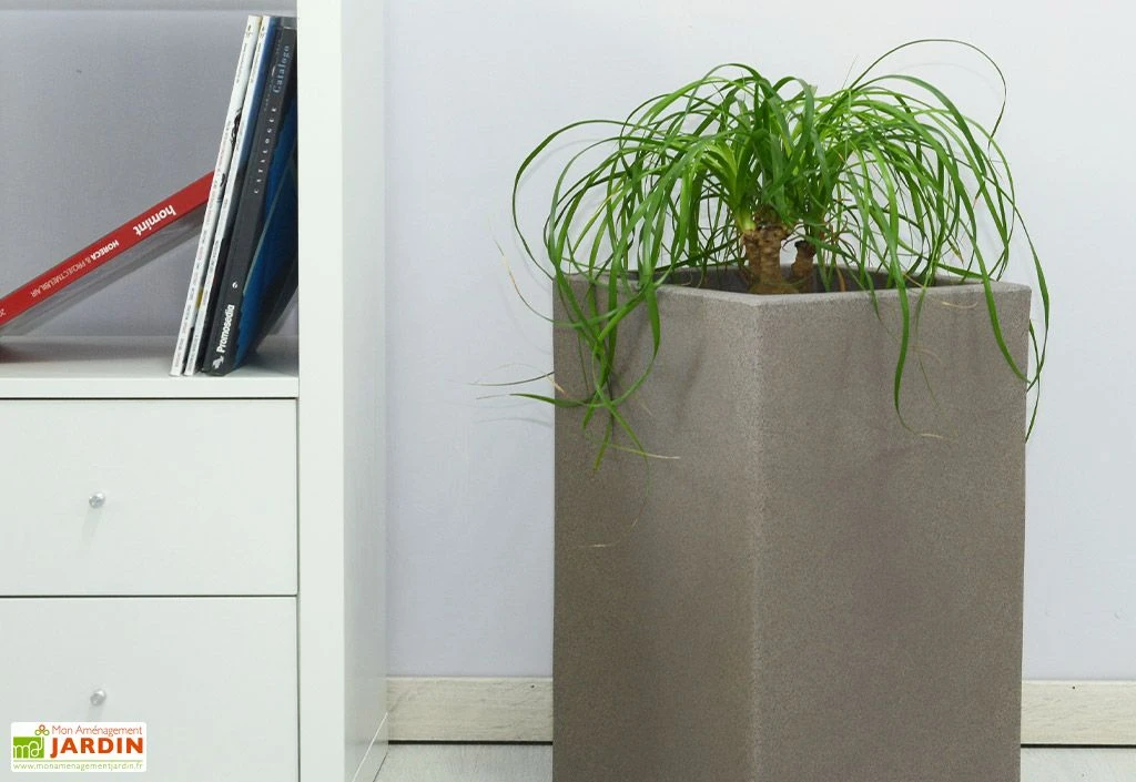 Ce grand pot de fleurs est disponible en plusieurs coloris : gris anthracite, tabac, blanc et gris.