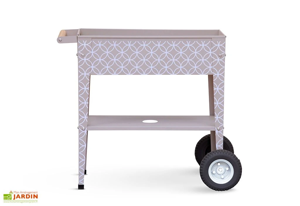 La jardinière surélevée est fabriquée en acier. Grâce à la peinture poudre qui le recouvre, tout le chariot de jardinage est rendu insensible à la rouille, mais aussi au gel et aux intempéries. Ses bords arrondis vous garantissent une sécurité en cas de cognements et chocs éventuels.