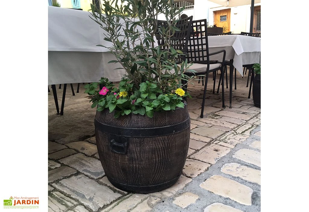 Votre bac à fleurs de chez Roto est en polyéthylène et a la forme d’un tonneau de vin. Son excellente imitation de bois en fait un produit très réaliste.