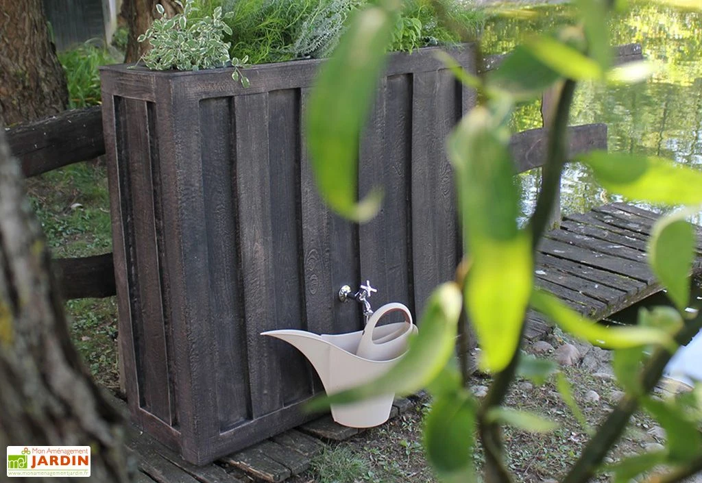 Ce récupérateur d’eau 4 en 1 sert également de décoration, de jardinière ou encore de bassin d’eau. Il mesure 120 x 40 x 110 cm ( longueur x profondeur x hauteur) et résiste aux UV.