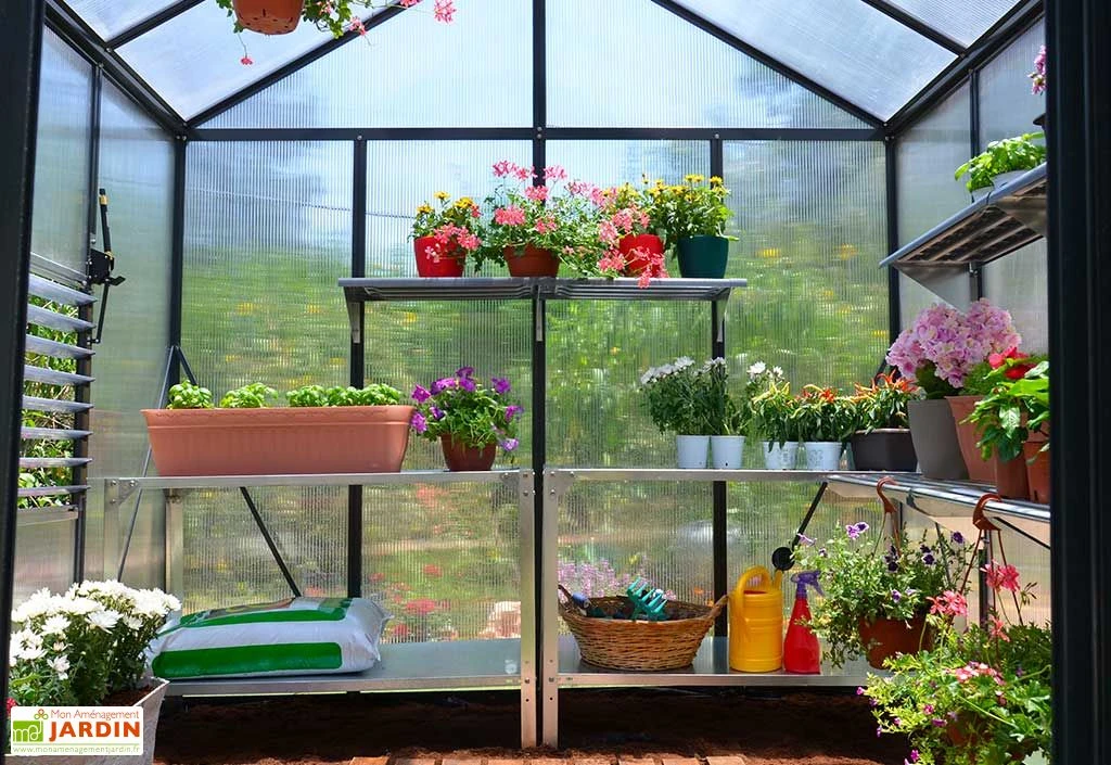 Côté aérations, cette serre est équipée d’une grille de ventilation à volets mobiles et de quatre fenêtres de toit dont l’ouverture s’effectuera automatiquement à partir de 12 à 15 °C. Vous pourrez ainsi réguler le taux d’humidité ou la température intérieure de la serre, tout en assurant une bonne circulation de l’air.