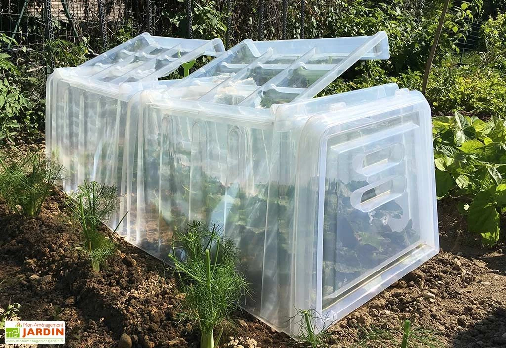 La serre de jardin Tunnel de Culture Modulo 60 Pouss’vert de chez Modul’o en polypropylène translucide, permet d’aider à la culture et au forçage de tous types de plantations. Elle est composée de 3 bases tunnel de 79 cm de longueur, 59 cm de largeur et 50 cm de hauteur, de 2 embouts et de 10 piquets en polyamide.