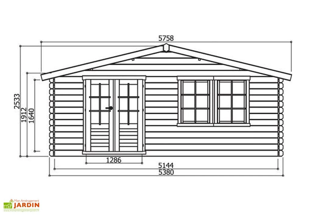 Votre abri de jardin Vernier de chez Solid est en sapin blanc du nord. Il dispose de parois de 28 mm d’épaisseur et d’un toit en 16 mm recouvert d’une toile bitumée. La pente de toit fait 14°. Les dimensions du chalet sont : 538 x 538 x 253 cm (l,l,h) pour une surface au sol de 28,94 m². La surface extérieure hors tout est de 34,84 m² et la surface intérieure est de 26,46 m².