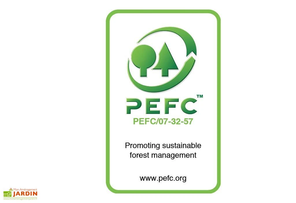 Le bois est issu de forêts d’Europe gérées de manière durable. Il est certifié par les labels FSC C009853 et PEFC 07-32-57 pour le respect de l’environnement. Le bois n’est pas traité.