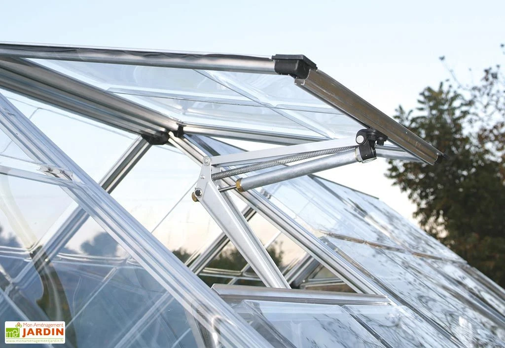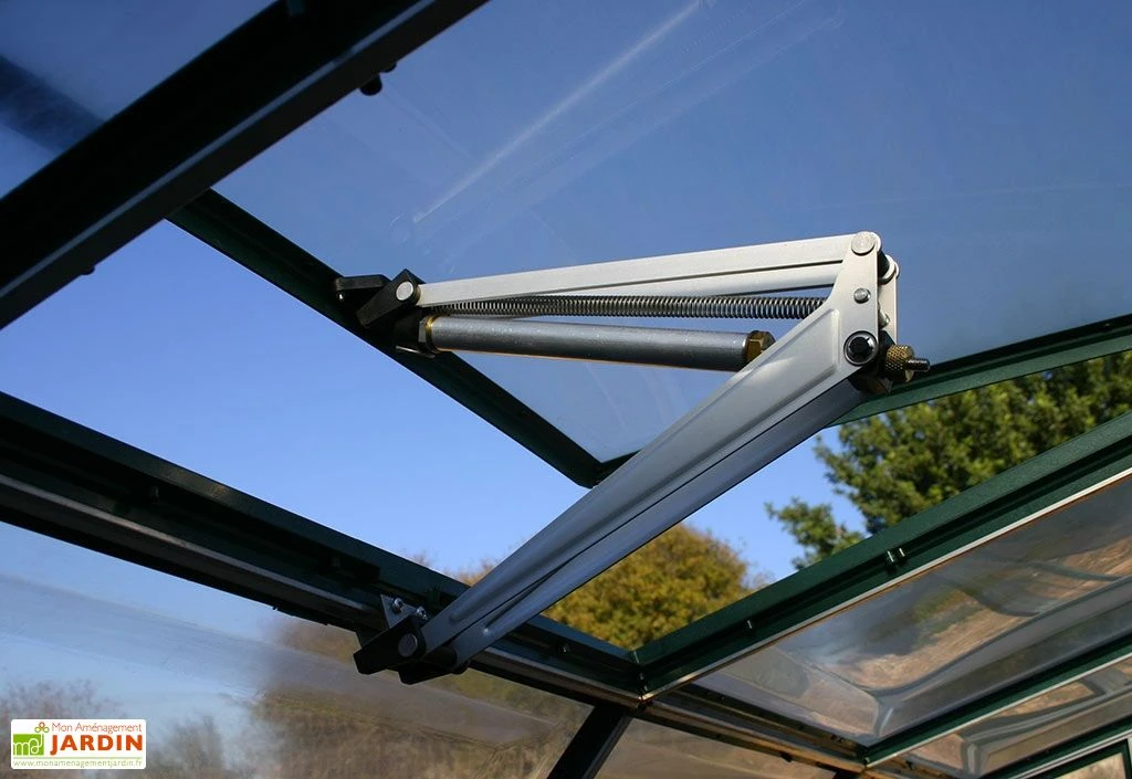 L’ouverture automatique de lucarne s’installe sur les serres de la marque Palram-Canopia. Elle permet de contrôler facilement la température et le taux d’humidité à l’intérieur de la serre. Plus l’air se réchauffe à l’intérieur de la serre, plus le mécanisme s’ouvre progressivement, plus l’air se refroidit, plus il se ferme.