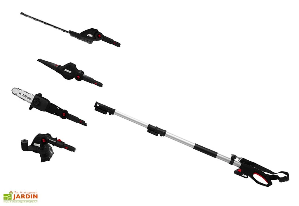 Le taille-haies sur batterie de chez Elem Garden est un outil de jardin multifonctions puisqu’il sert également de coupe-bordures, de souffleur et d’élagueuse grâce à tous les éléments fournis. Cet outil de jardinage électrique fonctionne sans fil pour vous permettre de l’utiliser en toute autonomie. Il est équipé d’une batterie au Lithium 1500 mAh de 20 V qui se recharge en 4 heures. Son manche télescopique mesure jusqu’à 1,60 m.