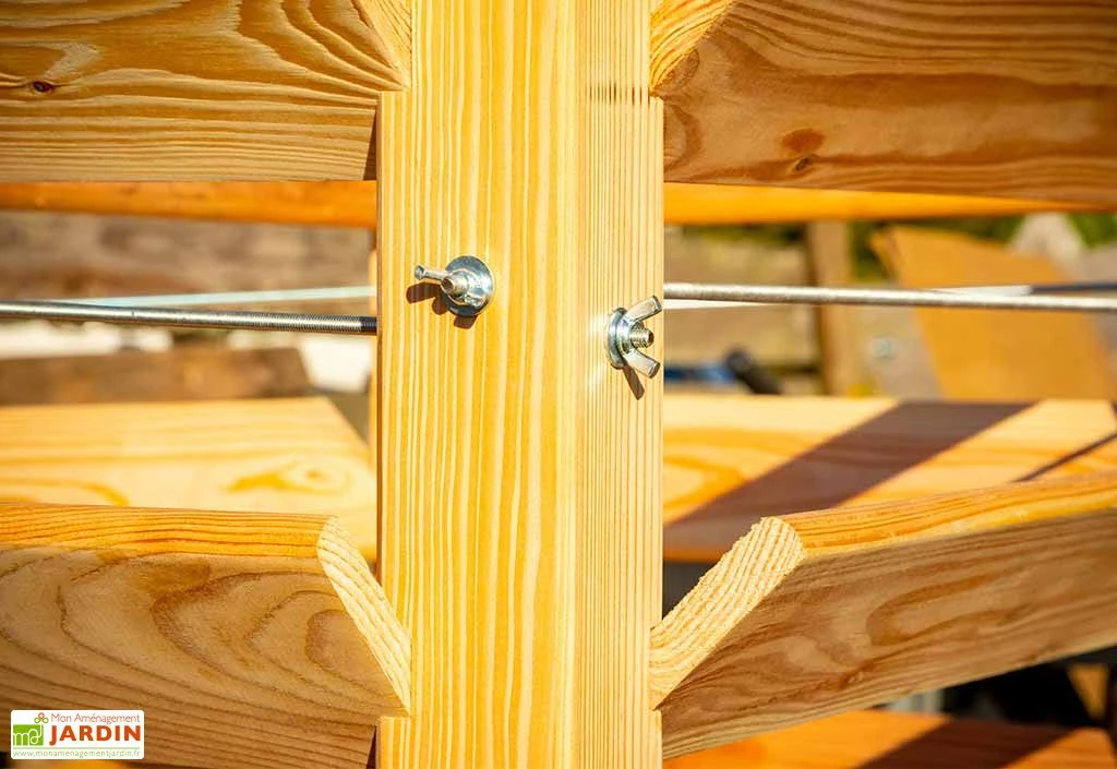 Solide et très résistante en cas d’intempéries, cette tour de culture verticale est conçue en mélèze. Quasi imputrescible, ce type de bois ne craint ni l’humidité, ni la moisissure et les insectes qui pourraient, à terme, le détériorer. Pour une protection complète et afin de préserver l’aspect du bois, il est toutefois recommandé d’appliquer une lasure ou un saturateur. Notez enfin que le bois utilisé pour concevoir ce potager surélevé est certifié FSC, ce qui signifie qu’il provient de forêts gérées de manière écoresponsable.